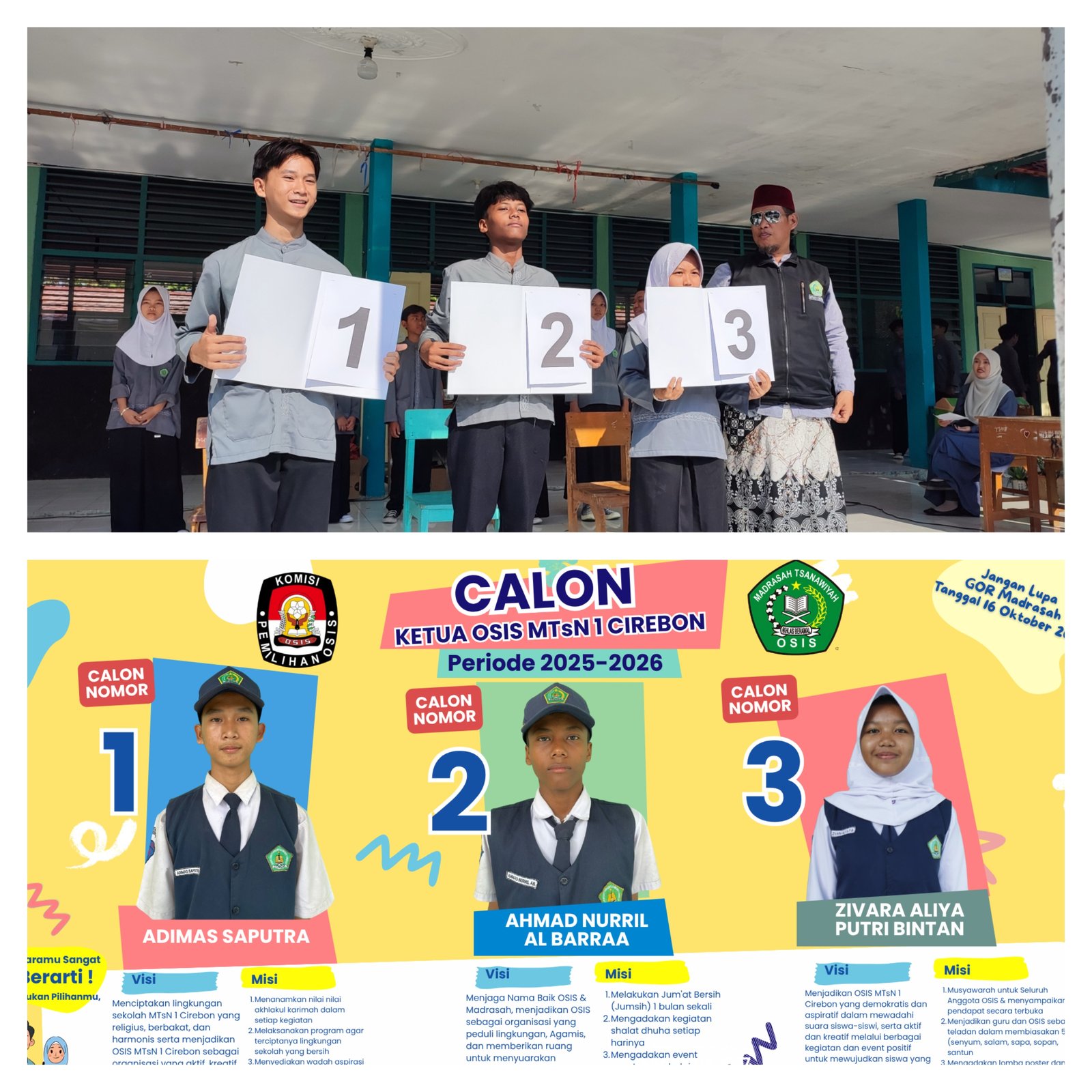 Ketiga calon telah menyiapkan visi dan misi terbaik untuk membawa OSIS MTsN 1 Cirebon menjadi lebih aktif, kreatif, dan berprestasi. Mereka akan mengikuti rangkaian kegiatan kampanye dan penyampaian visi misi di hadapan seluruh warga madrasah sebelum hari pemilihan.